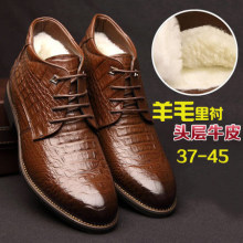 冬保暖羊毛鳄鱼纹真皮加绒棉鞋高帮尖头男士商务正装英伦棉皮鞋潮
