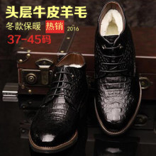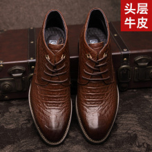 冬季新款真皮羊毛鳄鱼纹男士棉鞋加绒保暖系带高帮商务正装棉皮鞋
