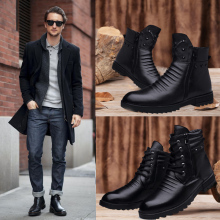 R.Partony新款男士头层牛皮高帮马丁靴系带英伦切尔西短靴男鞋