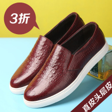 2017春秋牛皮尖头男鞋低帮男士正装鳄鱼纹商务真皮内增高皮鞋