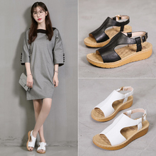 2017新款女鞋子夏季厚底孕妇凉鞋女夏防滑平底中跟罗马鞋韩版百搭