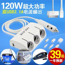英才星 一分三车载点烟器 一拖三电源分配器双USB接口充电器包邮