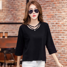 2017春季新款韩版时尚拼接宽松显瘦纯棉女圆领长袖T恤打底衫6010#