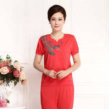 2015新款中老年女装夏季套装短袖上衣长裤妈妈装纯棉春装两件套