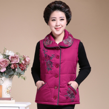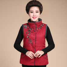 中老年女马甲背心婚礼妈妈装秋冬装棉马夹40-50岁刺绣立领薄棉衣