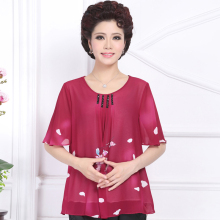 zln中老年女装夏装短袖T恤40-50岁妈妈装雪纺衫上衣中年妇女夏装