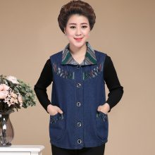 中老年女装春秋牛仔马甲背心60岁妈妈装外套老年人坎肩奶奶装大码