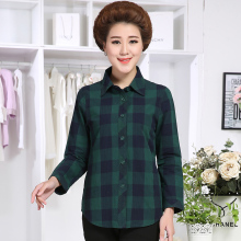 中老年女装衬衫春秋长袖50-60-70岁妈妈装格子纯棉衬衣老年人上衣