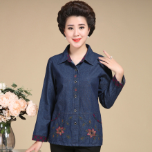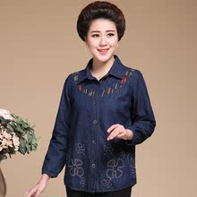 中老年女装牛仔衬衫50-60-70岁妈妈装春装长袖外套纯棉老年人衬衣
