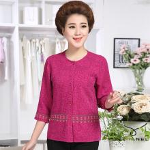 中老年女装春夏装七分袖T恤50-60岁妈妈装纯棉绣花中袖开衫女上衣