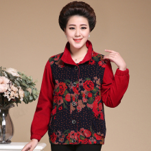 中老年女装衬衫60岁妈妈装秋装长袖衬衣老年人大码牛仔薄外套上衣