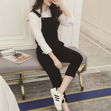洛曼帝森2016春秋裤子学生长裤春季女士学院风宽松黑色牛仔背带裤
