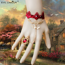 一件包邮 情人节手工戒指手链一体链复古吸血鬼饰品手腕蕾丝公主