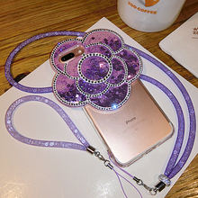 新款苹果7plus手机壳山茶花水钻6plus硅胶软壳挂绳7p流沙漏潮女款