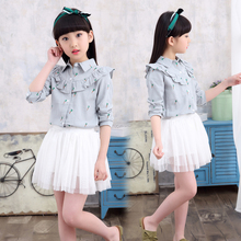 女童衬衫2017年春季新款韩版童装宝宝纯棉中大童长袖上衣儿童衬衣