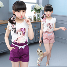 女童夏装时髦套装2017新款韩版潮衣时尚童装中大童T恤短裤两件套