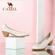 Camel/骆驼女鞋真皮品质时尚优雅 粒面牛皮镂空圆头高跟浅口单鞋