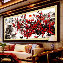 印花十字绣报春图梅花十字绣新款客厅梅开五福山水画风景系列大幅