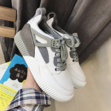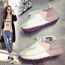 2017新款真皮系带透气运动鞋女跑步鞋厚底板鞋韩版女鞋浅口休闲鞋