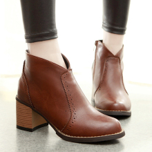 布洛克短靴女秋2015潮粗跟及裸靴英伦风马丁靴高跟单靴复古踝靴子