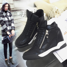 2017春季女松糕厚底单鞋厚底休闲鞋隐形内增高运动鞋前拉链平底潮