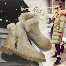 2016冬季新款雪地靴女羊皮毛一体真皮短靴女鞋平跟英伦马丁靴棉鞋