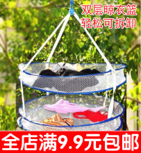 优质可拆卸双层晾衣篮 晒衣篮 晒衣网 防风钩钢圈设计