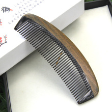 正品天然绿檀木梳子水牛角梳子防静电细齿直发木梳子送礼精品