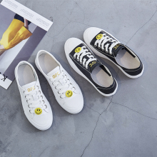 韩版真皮笑脸小白鞋女平底系带学生帆布鞋休闲板鞋百搭鞋子女单鞋