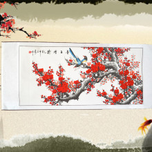 字画梅花国画梅花喜上眉梢梅花四尺横幅鸟梅已装裱成卷轴全国包邮