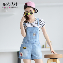 2017新款学院风吊带连体裤女夏季韩版少女牛仔背带裤学生短裤热裤