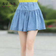 2017新款少女夏季纯棉松紧腰短裙裤裙学院风初中学生牛仔阔腿短裤