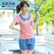 学生韩版宽松休闲运动套装2017新款学院风少女夏季短袖短裤两件套