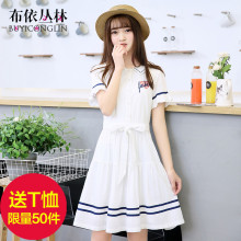 2017夏装新款初中学生小清新裙子韩版修身少女连衣裙学院风假两件