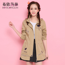 2017新款学院风初中学生春装韩版修身显瘦中长款少女刺绣风衣外套