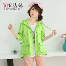 高中学生短款风衣外套2015新款少女连帽宽松薄款短外套大口袋卫衣