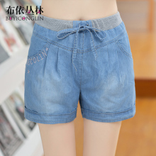 2017新款韩版宽松少女牛仔短裤高腰热裤学生学院风夏季松紧腰裤子