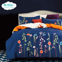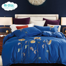 布可以蓝色被套 纯棉贡缎绣花四件套全棉床单向日葵印花床上用品