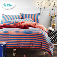 布可以轻奢针织棉床笠4件套全棉纯棉条纹被套纯色床单1.5/1.8m B
