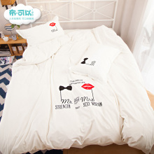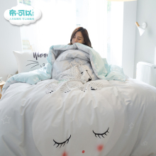布可以柔软水洗棉四件套 全棉刺绣被罩可爱卡通被套纯棉床单1.8mA
