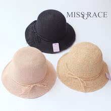 包邮韩版手工蝴蝶结草帽遮阳防晒帽子女夏季天可折叠盆帽渔夫沙滩