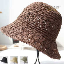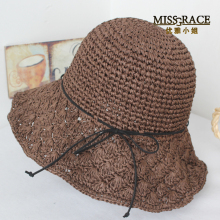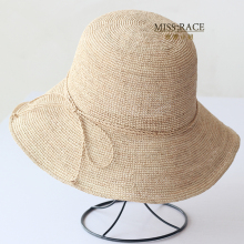 日单细丝进口拉菲草手工钩针草帽女士帽子夏季渔夫帽盆帽可折叠