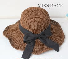 包邮字母刺绣大檐遮阳帽草帽女士夏天韩版太阳帽子沙滩防晒折叠