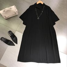 夏季新款衬衫领宽松大摆显瘦黑色连衣裙 大码女装新品