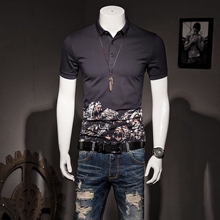 欧洲站男装短袖POLO衫丝光棉翻领T恤修身印花半袖体恤夏季衣服潮