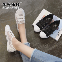 阳光姐妹小白鞋女夏季2017新款百搭韩版平底浅口蕾丝网纱透气瓢鞋