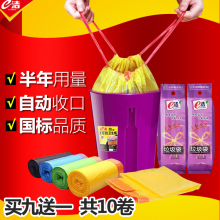 e洁包邮自动收口加厚家用垃圾袋手提式黑色小中号一次性塑料袋9卷