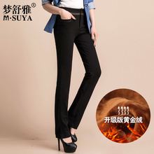 梦舒雅女裤2016冬新款加绒加厚小直筒裤女显瘦大码休闲裤子女长裤