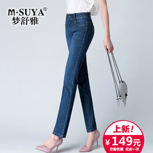 梦舒雅女裤2017春季新款大码弹力牛仔裤女大码修身小直筒裤子长裤