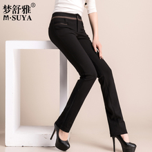 梦舒雅女裤2017春夏新款高腰直筒裤女长裤大码裤子休闲裤黑色西裤